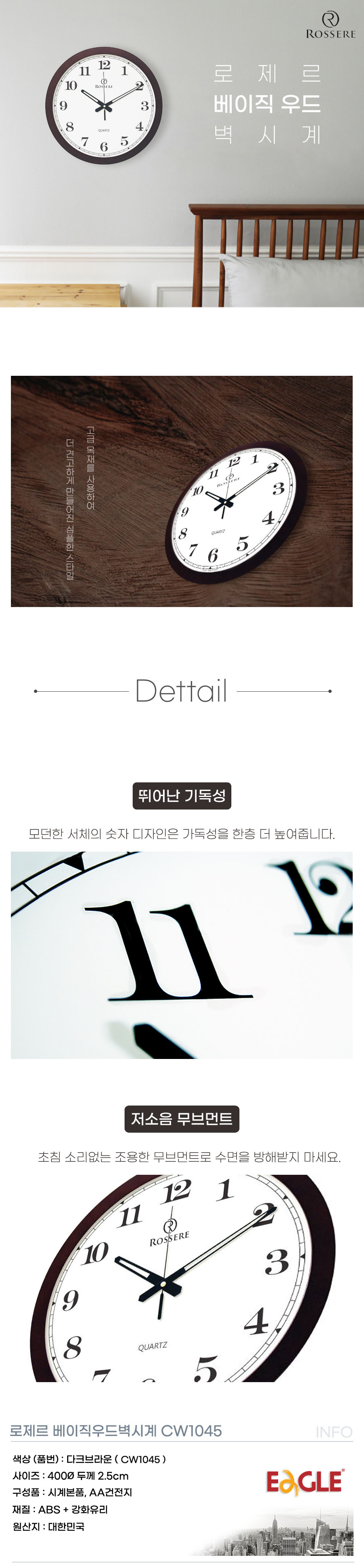 베이직우드 벽시계(대/CW1045/400㎜/브라운)