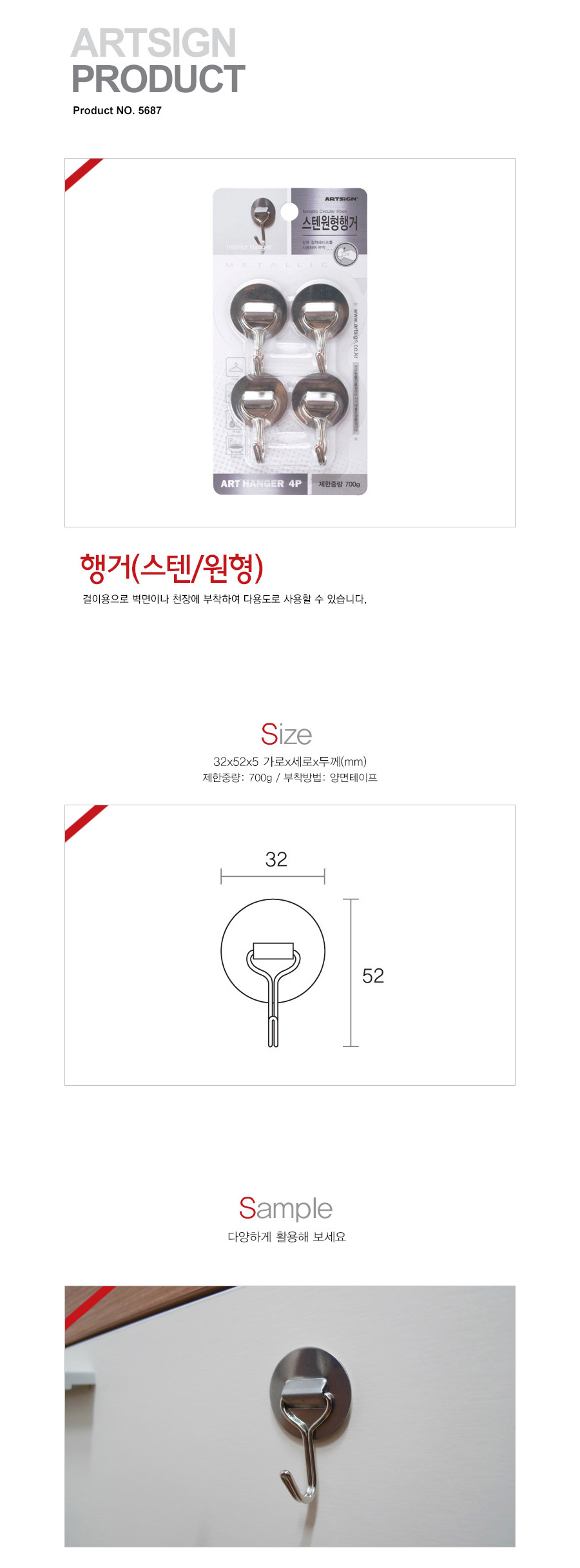 아트사인 스텐원형행거/32*52*5 (4개입) (5687)