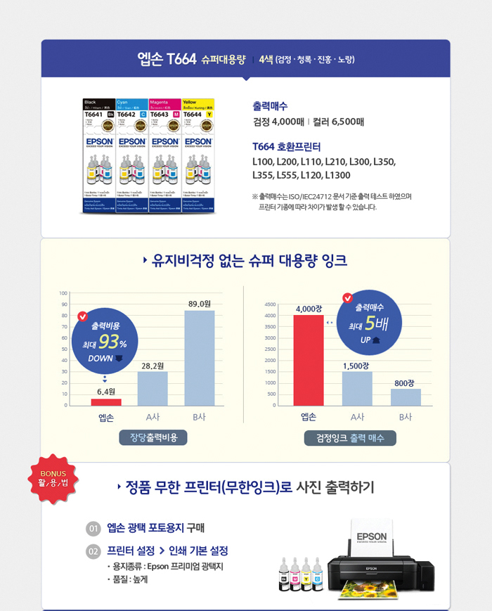 | 품명 및 모델명 | EPSON 잉크 T664400 황색(Yellow) |