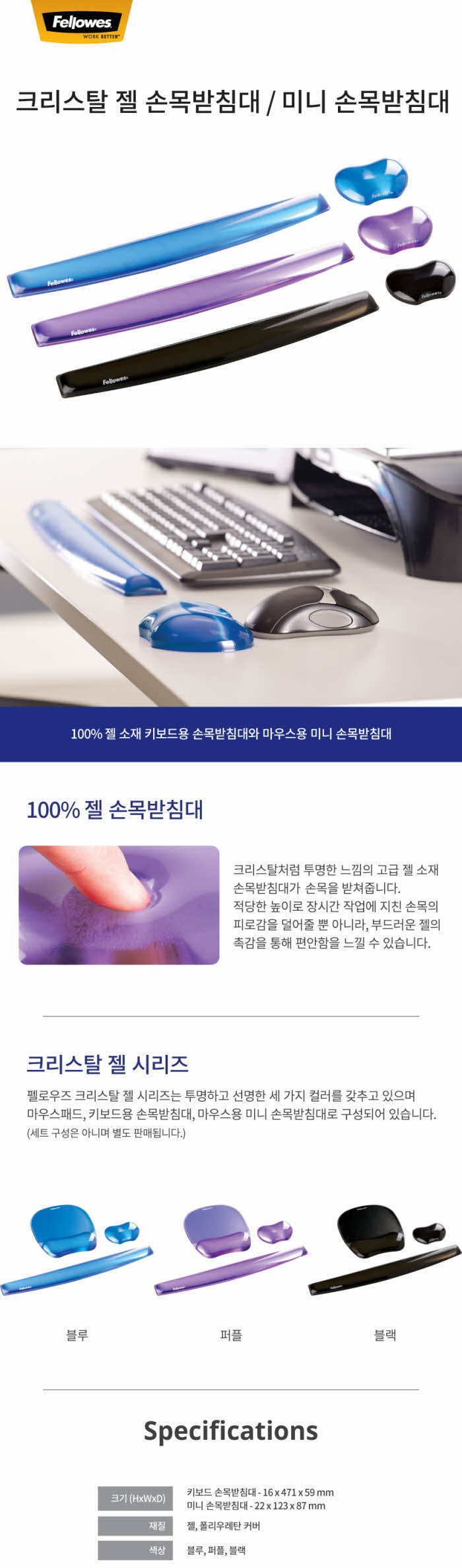 | 품명 및 모델명 | Fellowes 크리스탈젤 미니 손목받침대 91177 (블루) |