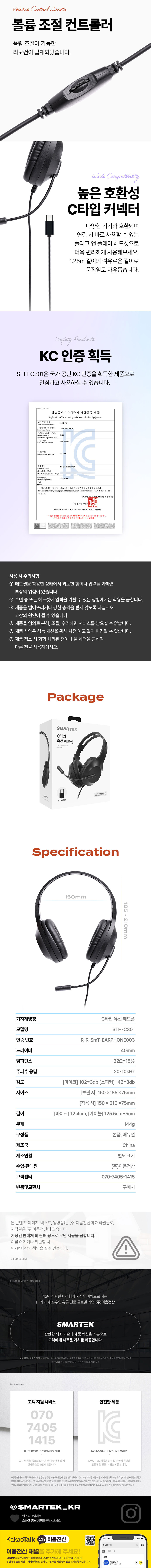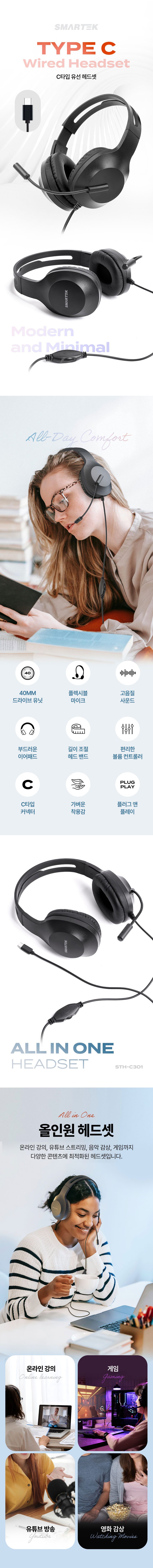 스마텍 C타입 가벼운 유선해드셋 STH-C301 (블랙)