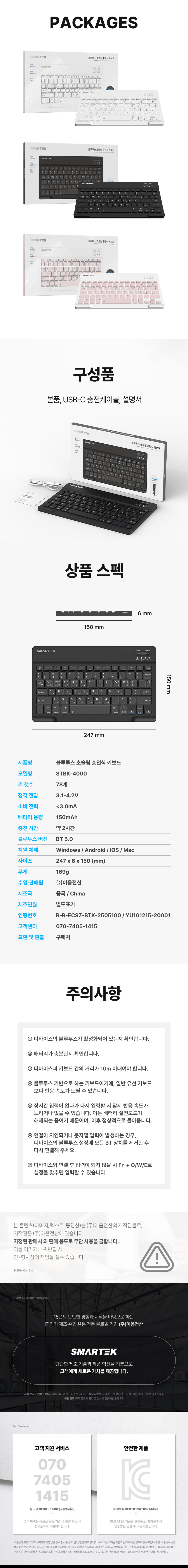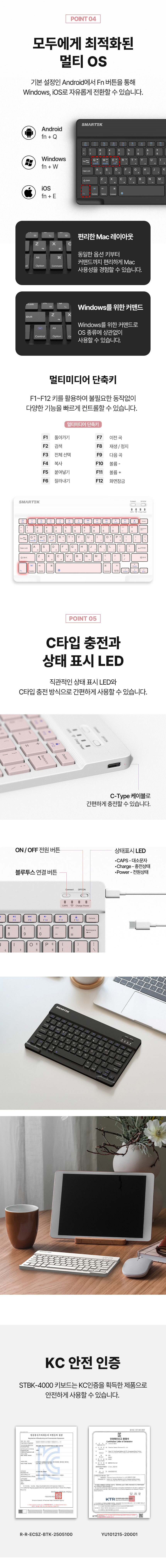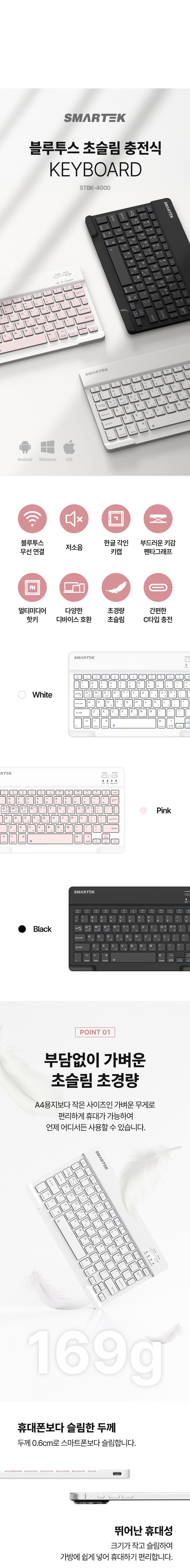 로제트 블루투스 초슬림 충전식 키보드 STBK-4000 (블랙)