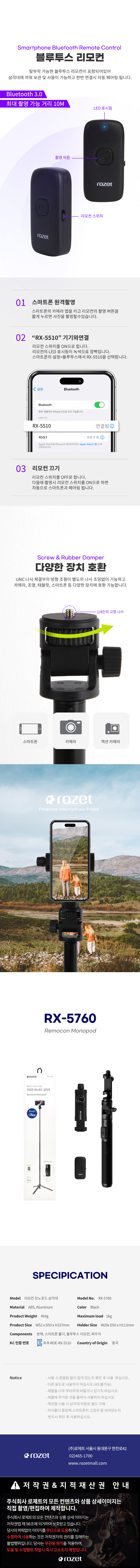 로제트 스마트폰삼각대 RX-5760 무선리모컨