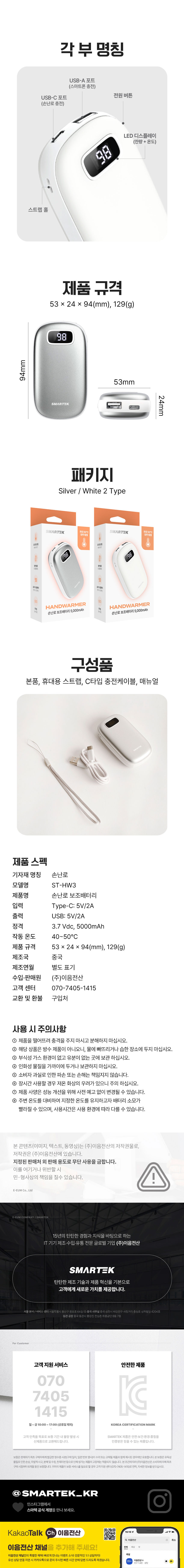 스마텍 충전식손난로 휴대용보조배터리 ST-HW3 (실버)