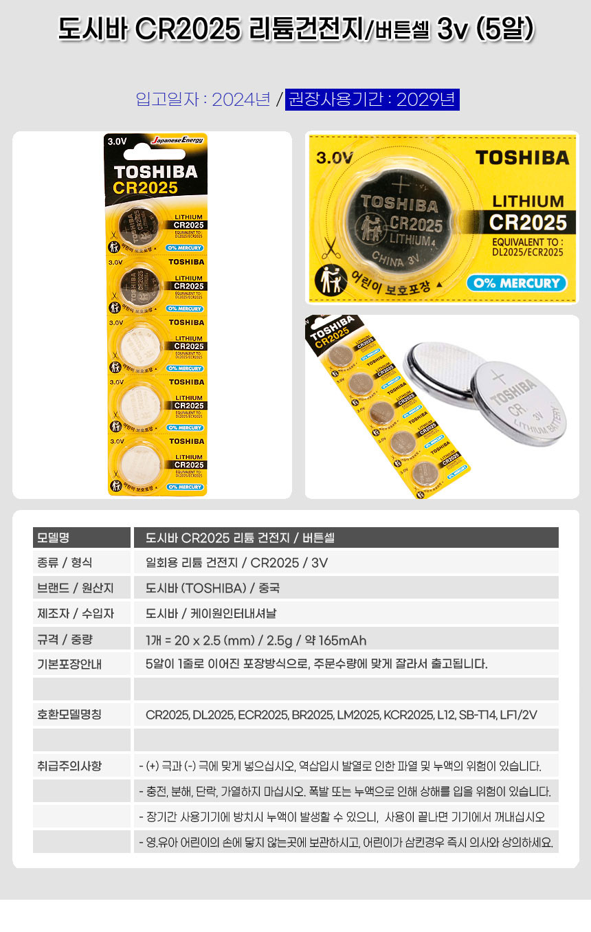 도시바 동전건전지 코인건전지 CR-2025 (5개입)