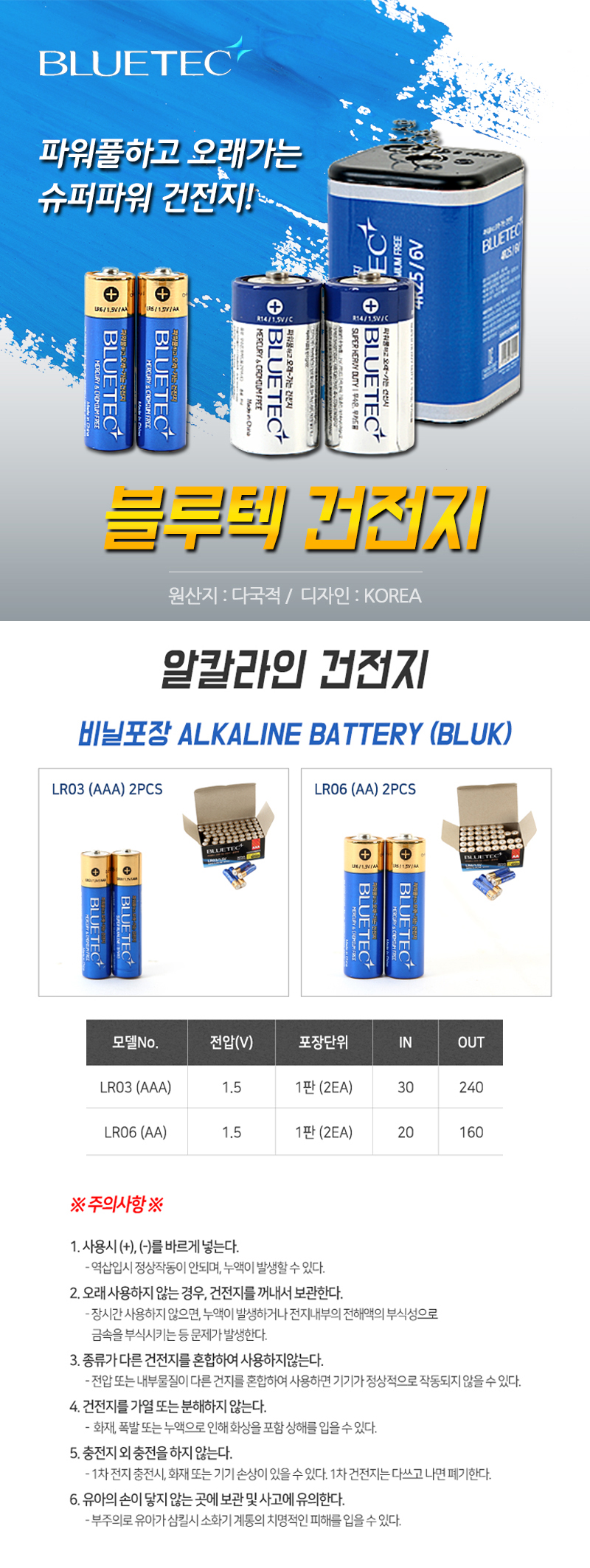 블루텍 알카건전지 LR03(AAA)(1판2EA)비닐포장 (60알)*1갑