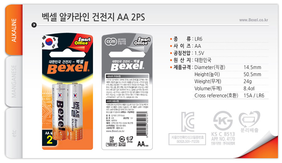 | 품명 및 모델명 | 벡셀 알카 건전지 LR6 (AA,B2) |
