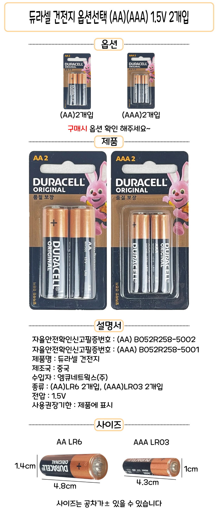 듀라셀 디럭스 알카 건전지 1.5V (AA,B2)