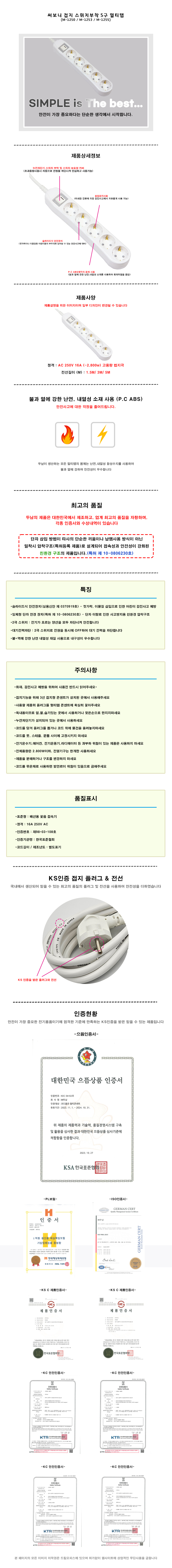 스위치부착 5구 5M 멀티탭(M-1255)_비닐포장
