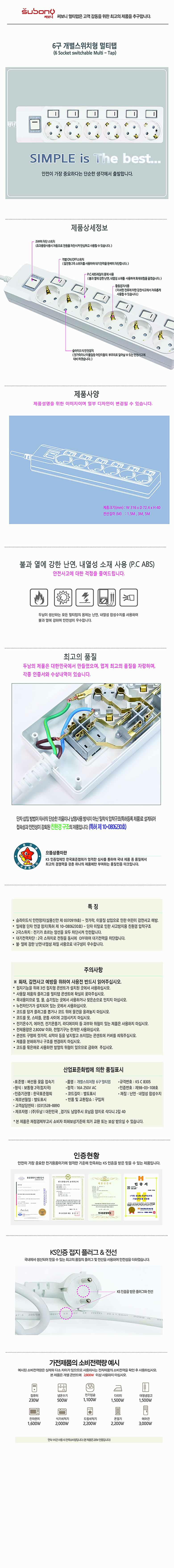 써보니)6구접지스위치멀티탭(3M/M-1263)