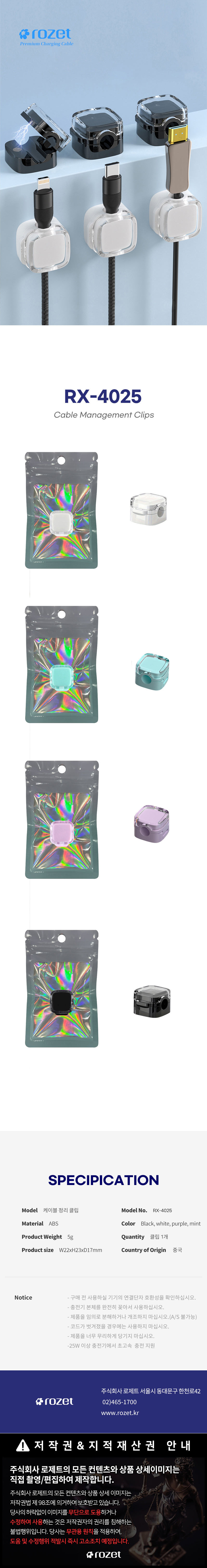 로제트 케이블정리홀더 선정리 RX-4025 (1P) (블랙)