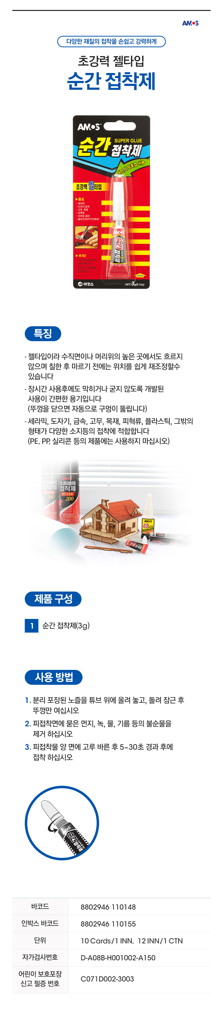 | 품명 및 모델명 | 아모스 순간접착제(젤) 3g |