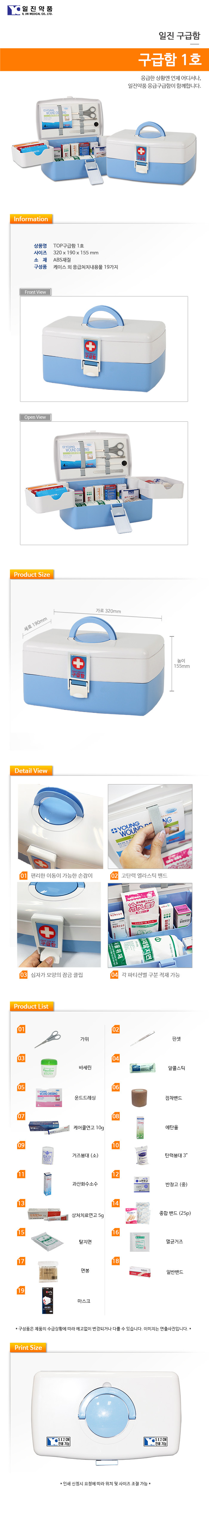 일진약품 구급함 1호 (구성품 18종 포함) 320X190X155mm
