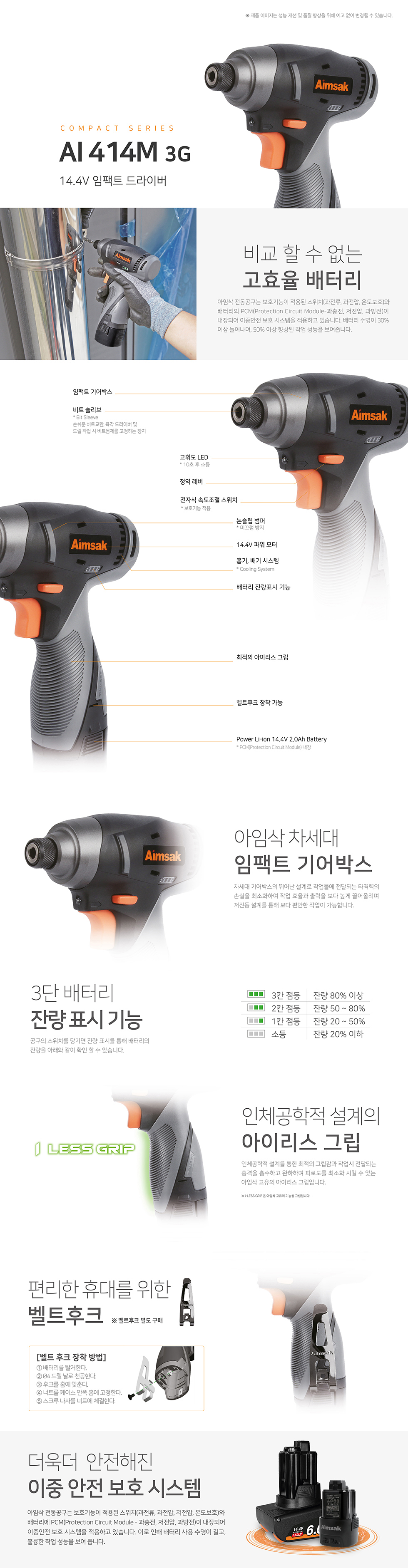 아임삭 충전임팩트드라이버 AI-414M 3G 14.4V 2.0Ah 배터리2충전기1