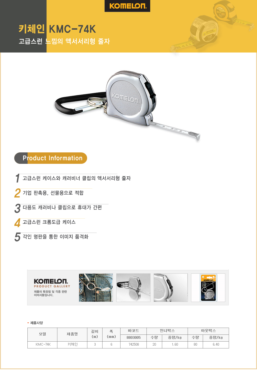 코메론 키체인 줄자 KMC-74 3m