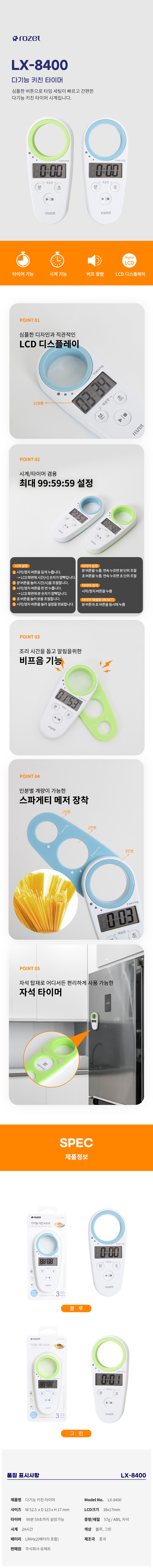 로제트 타임 타이머 주방 쿠킹 요리 LX-8400 (블루)