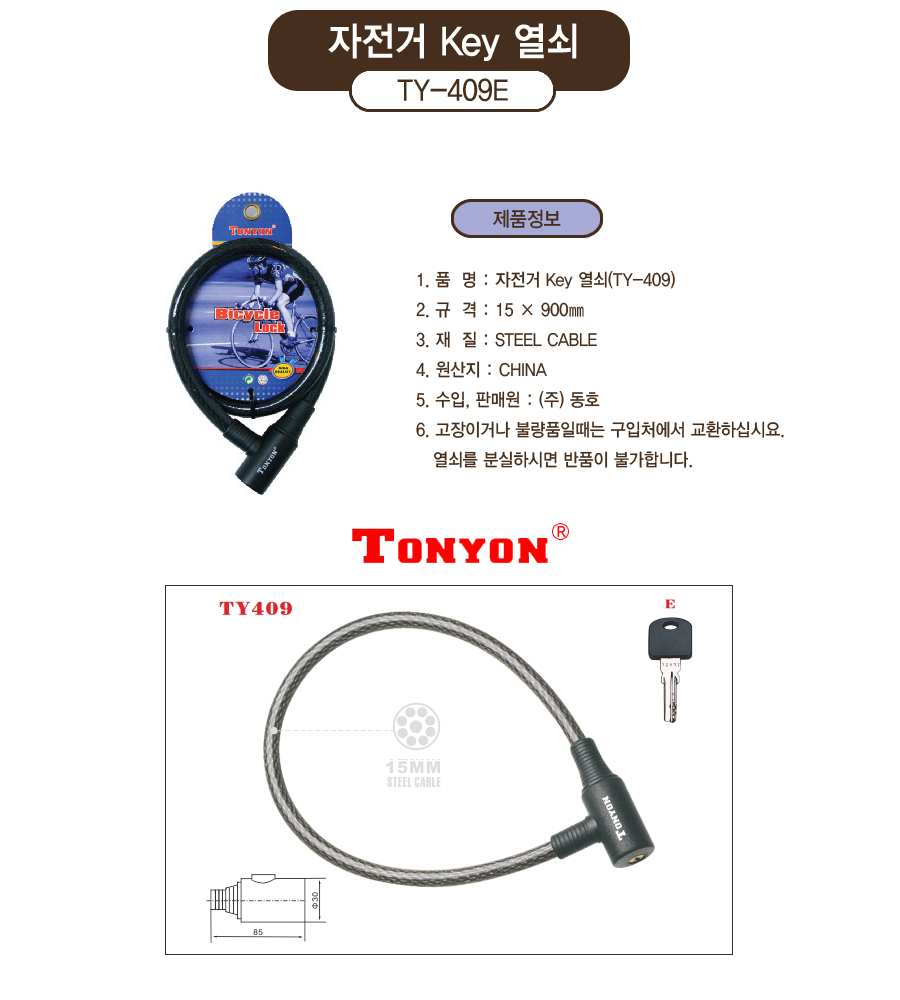 토니온)자전거열쇠(대/열쇠/TY-409E)